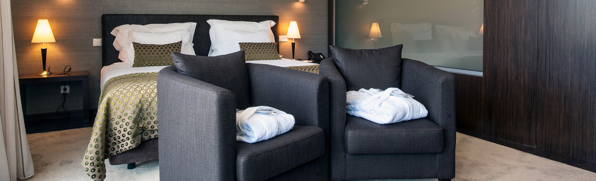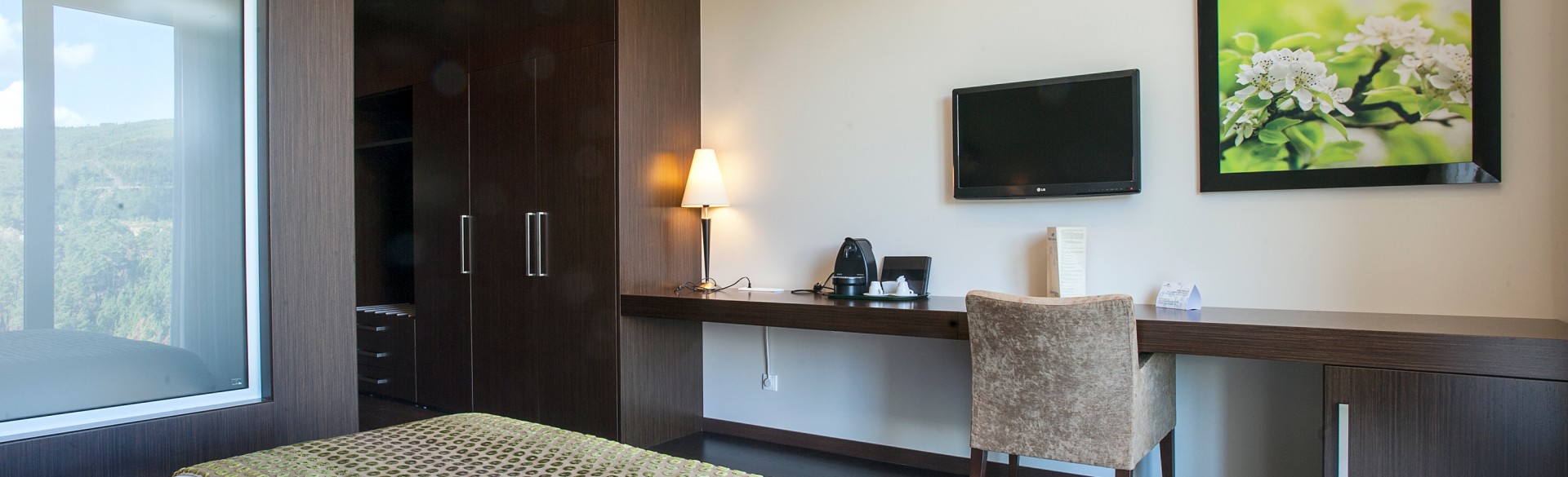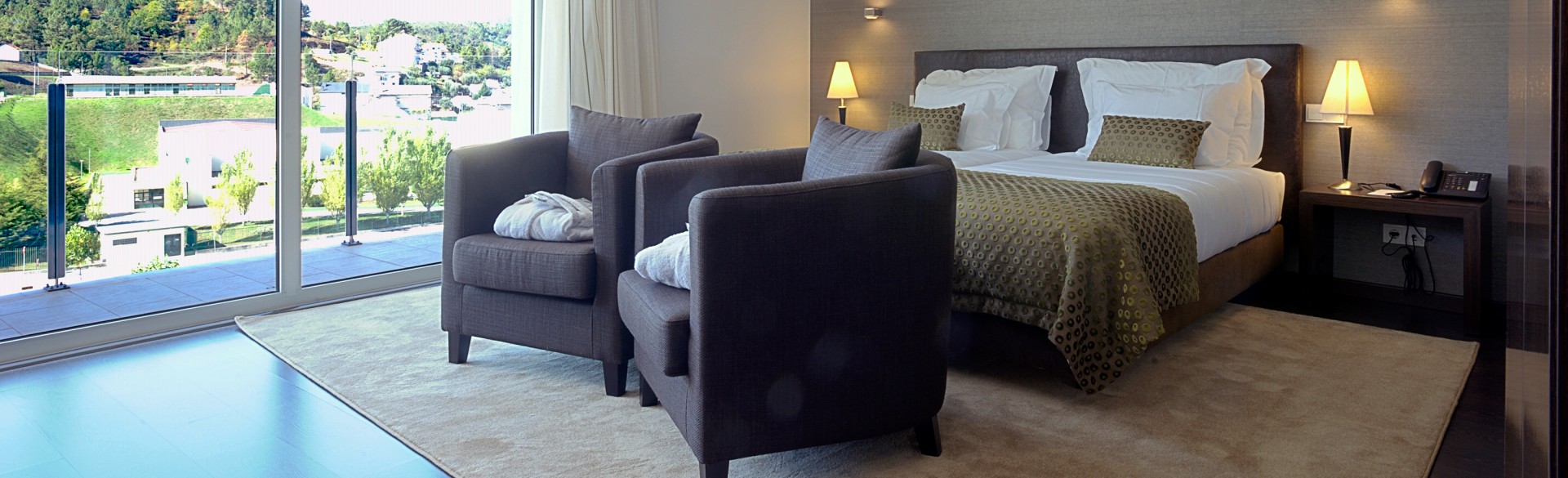 Com vista panorâmica sobre a serra e a vila, os 52 quartos do hotel estão cuidadosamente preparados com todas as comodidades para vos receber: mini bar, ar condicionado, secador de cabelo, TV satélite, cofre, telefone e WiFi. No SPA com piscina interior climatizada, jacuzzi, sauna, banho turco e ginásio, o momento é para esquecer as preocupações do dia-a-dia e entrar em relaxe absoluto.