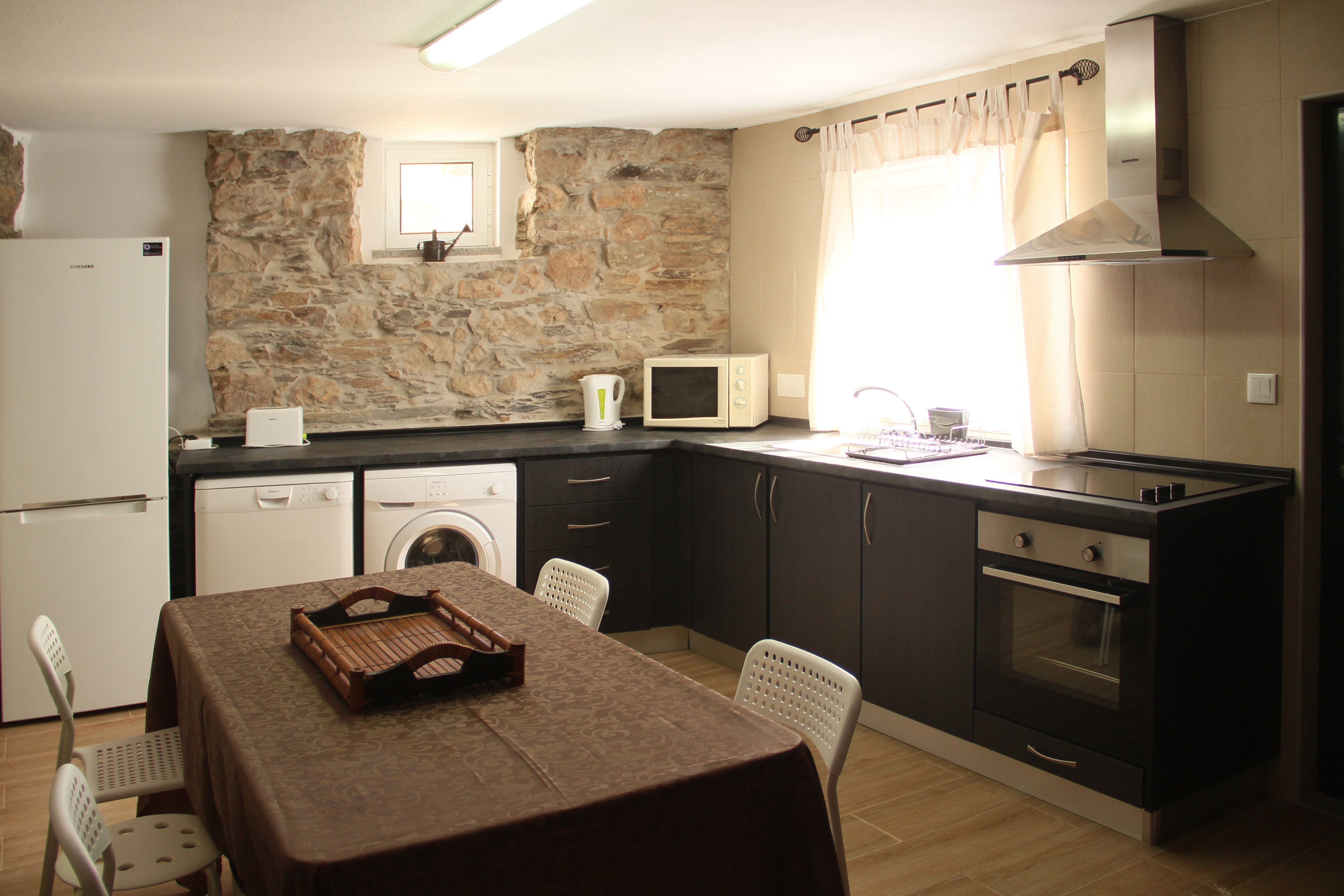 Rebuilt in stone and schist in a combination of traditional and modern design, they are located in a village with delightful, picturesque features, which gave the name to these houses: the village of Carregais. The houses are named after the trees of the region that give us wonderful fruits, flavours and fantastic colours: Cerejeira (cherry tree), Oliveira (olive tree), Laranjeira (orange tree), Medronheiro (strawberry tree), Ameixeira (plum tree) and Castanheiro (chestnut tree).