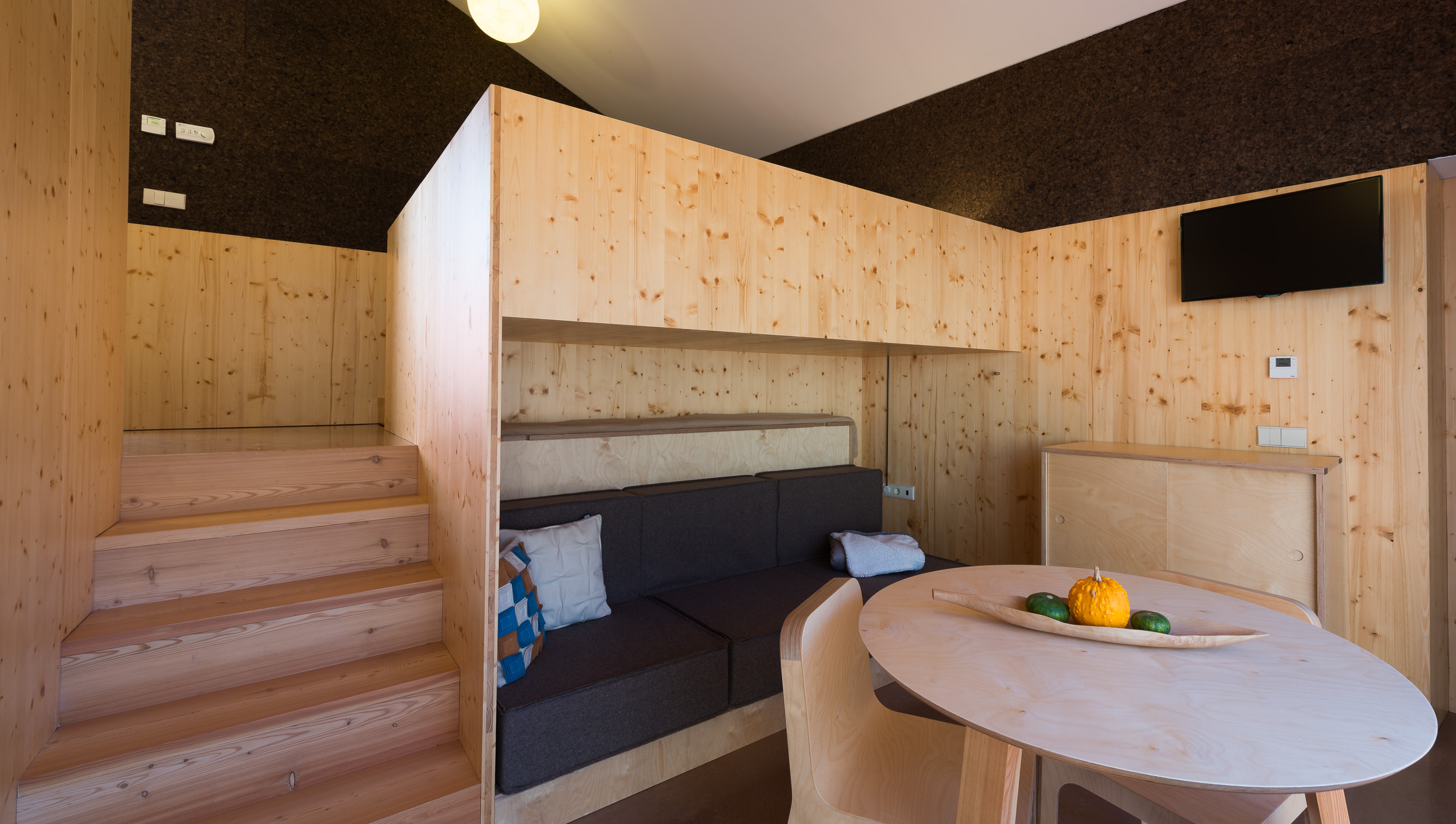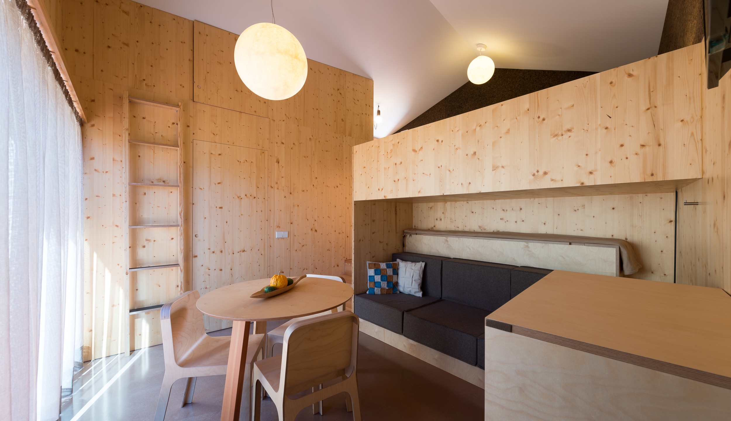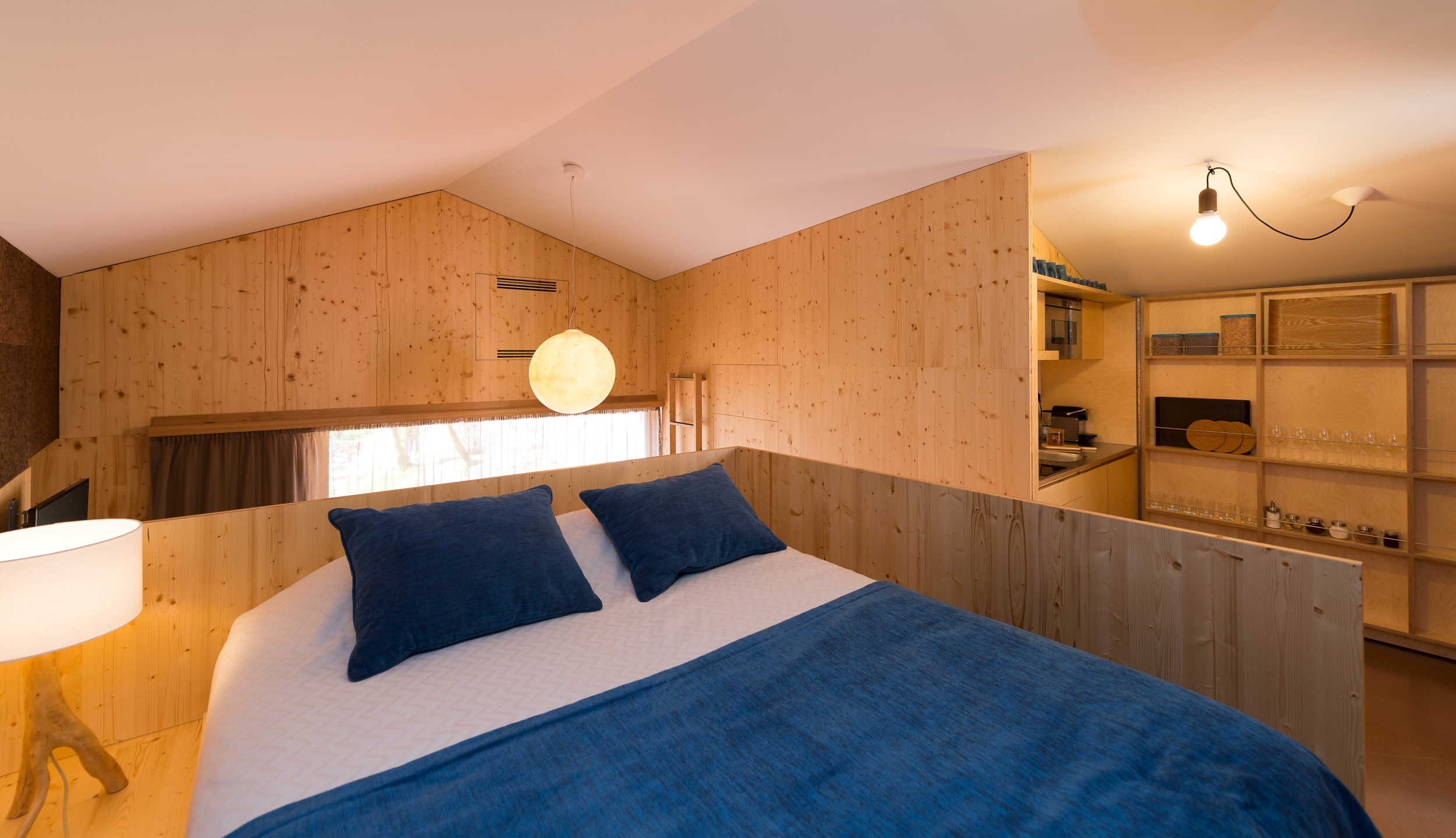 A Casa Noitibó é um estúdio independente com capacidade máxima para 3 pessoas, com uma cama de casal e uma cama individual basculante por detrás do sofá. A casa possui climatização e cozinha equipada. Tem ainda uma zona de estar equipada com mesa, cadeiras, sofá e cómoda. Uma janela de correr de grandes de dimensões dá acesso ao terraço e ao jardim onde se situa a piscina comum a todas as casas. Esta casa pode ter uma ligação interna com a Casa Cuco, caso seja alugada simultaneamente.